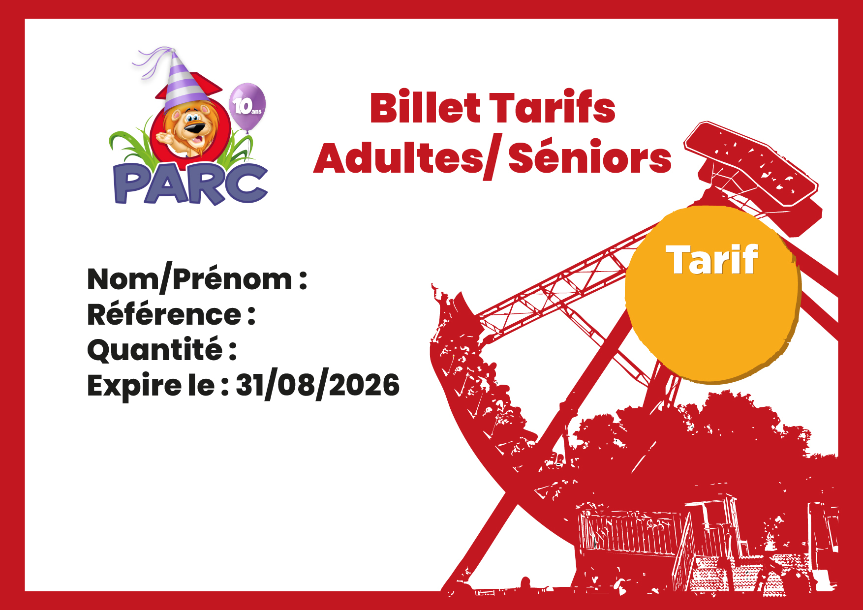 Billet utilisable lors de la saison en cours par une personne de plus de 16 ans.